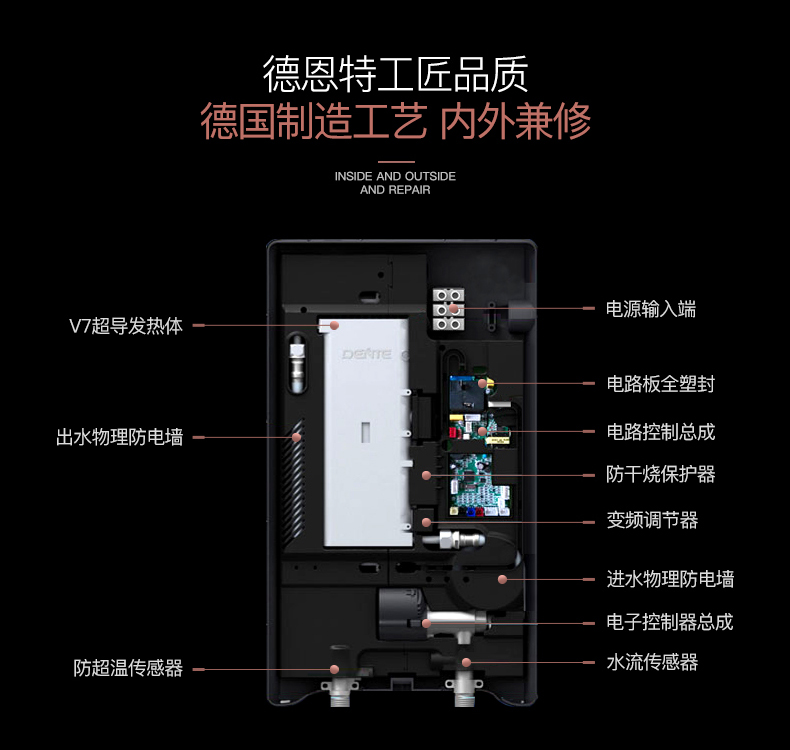 德恩特品牌旗下涵蓋即熱式電熱水器,速熱式電熱水器,快熱式電熱水器品牌和凈水機等